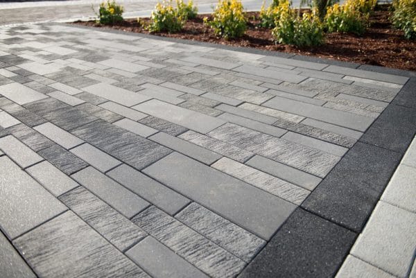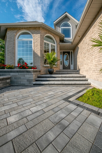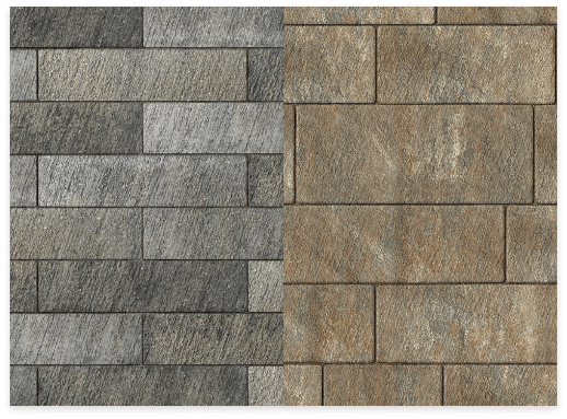 The long, clean lines of Artline reflect an emerging trend to modern, linear outdoor designs. The product is sold in a random bundle of seven different rectangular shapes, of varying lengths and two widths. These units are typically laid in a running bond pattern which creates a long, linear look. In some regions, there are a variety of Artline color and texture options to choose from, including some with EnduraColor and EasyClean®, an integral surface protection from stains. These finishes can be used separately for a cohesive look, or combined together to create color and textural interest.