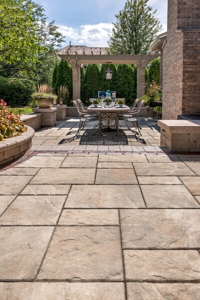Inspired by natural cut flagstone, the blended colors and distinctive texture of Beacon Hill Flagstone has a relaxed look and feel, with all the benefits of Enduracolor technology. The subtle surface texture is comfortable to walk on in bare feet, but appears more dramatic in the light of sunrise and sunset. Sold in a random bundle of three relatively large sizes, Beacon Hill Flagstone can be laid in a number of patterns for a more, or less, random appearance. A larger, XL rectangle is now available in most regions, to be used alone or in combination with the traditional random bundle. Together, these characteristics have made Beacon Hill Flagstone one of our most popular pavers for patios, pool surrounds and walkways.