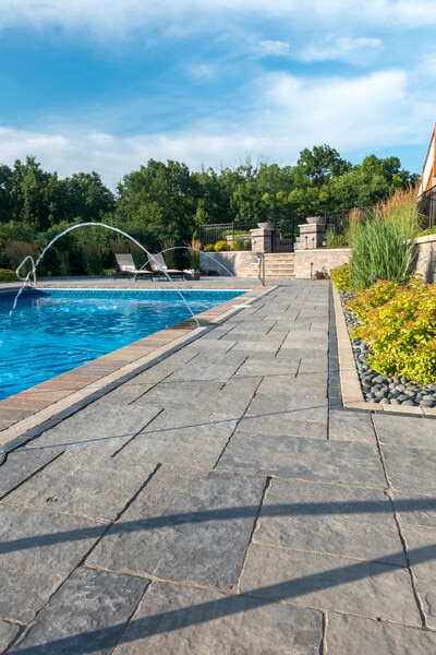 The subtle surface texture and an understated edge detail of Bristol Valley brings a new, refined elegance to projects where a more commonplace flagstone slab may have been used in the past. With the refined surface and long lasting color of Enduracolor, Bristol Valley is an excellent choice for patios, pool surrounds and walkways. Blended colors add to the appearance of natural stone. Available in a random bundle, three moderately sized units can be laid in a number of patterns for a more, or less, random appearance. A new, larger XL rectangle is also available in some regions, to be used alone or in combination with the random bundle.