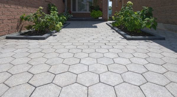 This contemporary shape provides designers with a unique range of patterning options that are impossible to deliver with traditional four-sided pavers. Choose a single color for a homogeneous look or use a mix to create unique, one-of-a-kind patterns.
