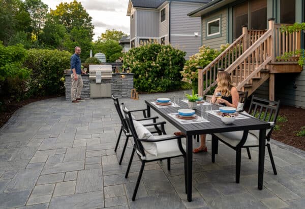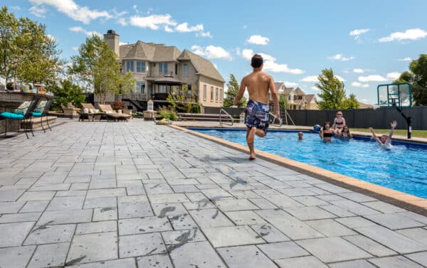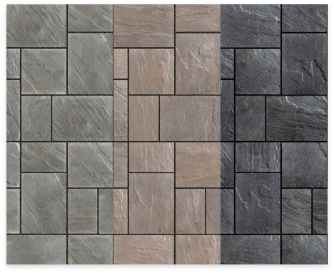 Inspired by the texture of natural cut flagstone, Richcliff offers superior durability and timeless appeal for patios, walkways, and even driveways when utilizing the Random Bundle. A multitude of stone textures were cast using Reala™ Technology, which ensures that finished projects will have a completely random, and natural appearance. And unlike natural stone, which can crack, split and fade, Richcliff is virtually indestructible. Ultima™ Concrete Technology makes Richcliff up to four times stronger than conventional poured concrete. A new large rectangle size is now available for use on its own or in combination with the traditional 3-stone random bundle for expanded patterning options and a larger scale look.