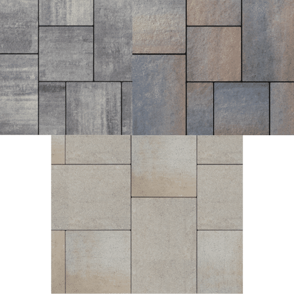 The casual look of Westport is achieved with a smooth surface and classic colors. Sizes within the 3-stone random bundle for Westport are smaller than Beacon Hill but the ratios are the same, which makes a variety of patterning options possible for patios, walkways or driveways.