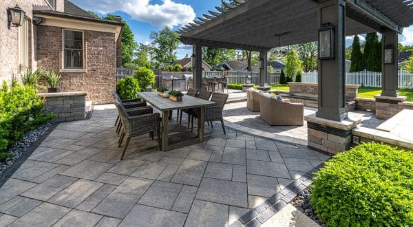 The subtle surface texture and an understated edge detail of Bristol Valley brings a new, refined elegance to projects where a more commonplace flagstone slab may have been used in the past. With the refined surface and long lasting color of Enduracolor, Bristol Valley is an excellent choice for patios, pool surrounds and walkways. Blended colors add to the appearance of natural stone. Available in a random bundle, three moderately sized units can be laid in a number of patterns for a more, or less, random appearance. A new, larger XL rectangle is also available in some regions, to be used alone or in combination with the random bundle.