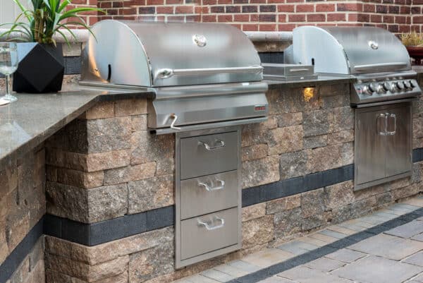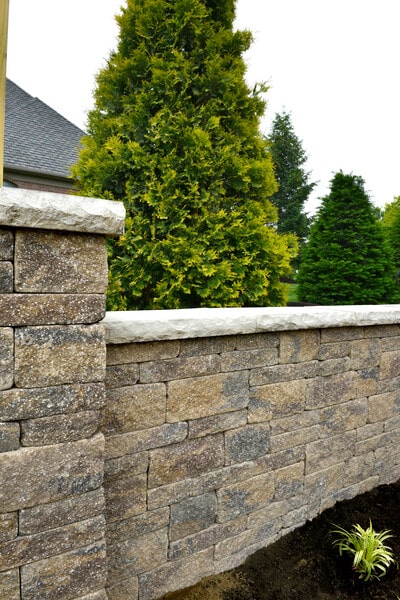 The antique-textured finish of Estate Wall creates the appearance of timeworn, natural rock. Choose 3-stone random bundles that are 6” (15cm) higg to create straight or curved walls, planters, steps, pillars, fire features, grill islands and more. Plastic connectors create interlocking between rows and are supplied with the product.