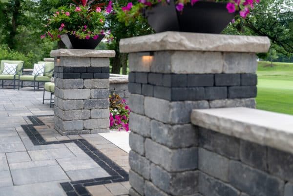 With an antiqued patina similar to Brussels Dimensional Stone, but in a larger scale format, Olde Quarry reflects the cues of quarried stone, and brings timeless warmth to any project. With plastic connectors that create interlocking between rows, the 3-stone random bundle can be used to build straight or curved walls, planters, steps, pillars, fire features, grill islands and more.
